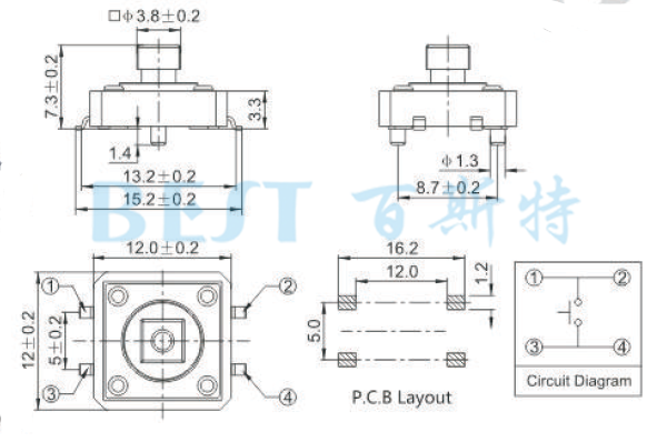 規(guī)格尺寸:12×12輕觸開關(guān)